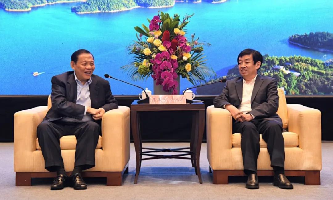 ▲常州市委书记齐家滨(右)在溧阳会见金鹰集团主席陈江和(左)