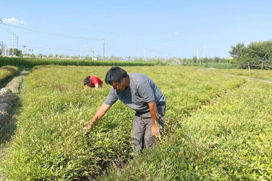 郑卫强的堂兄郑定保,以前在厂里上班,辛苦一年,刨除家里的开销,没能剩下多少,所以也决定回家种南天竹。“刚开始就只种了自家的四五亩地,想试试看,没想到第一批就卖得很好。”尝到甜头的郑定保,如今已逐渐将种植面积扩大到40亩,他还准备承包几亩地做大棚,农闲时可以卖卖水果和蔬菜。